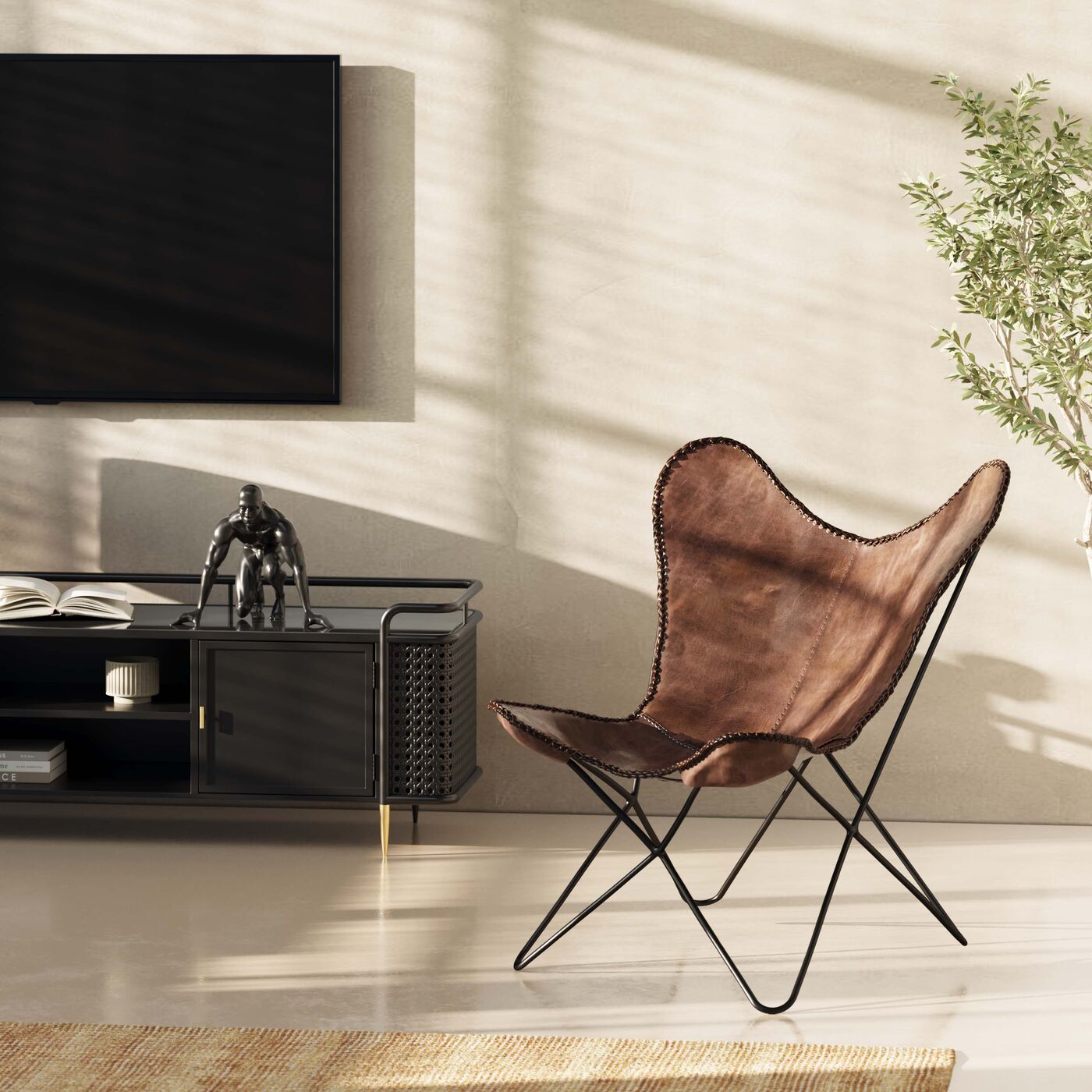 With this relax armchair, a real design classic moves into your home. However, the term classic does not do this piece of furniture justice. Designed in Argentina at the end of the 1930s and awarded many prizes in its original form, the so-called butterfly armchair still looks modern today. This is due to the refined reduction of the forms to the essentials. A cover made from one piece lets you sink deeply into the chair and supports your whole back up to the neck. (Seat depth 63cm. Seat height 37cm). The cover has pockets at its four corners with which it is hooked into the frame. For cleaning, you can easily remove the cover and put it back on again. The frame made of powder-coated steel has a graphic sculptural effect and lends visual lightness to the appearance of the casual armchair. From Bauhaus to architect s house, from boho look to country house style, from industrial design to Scandinavian living style, this young classic is indispensable in any living style and is a piece that stays because it retains its value.
