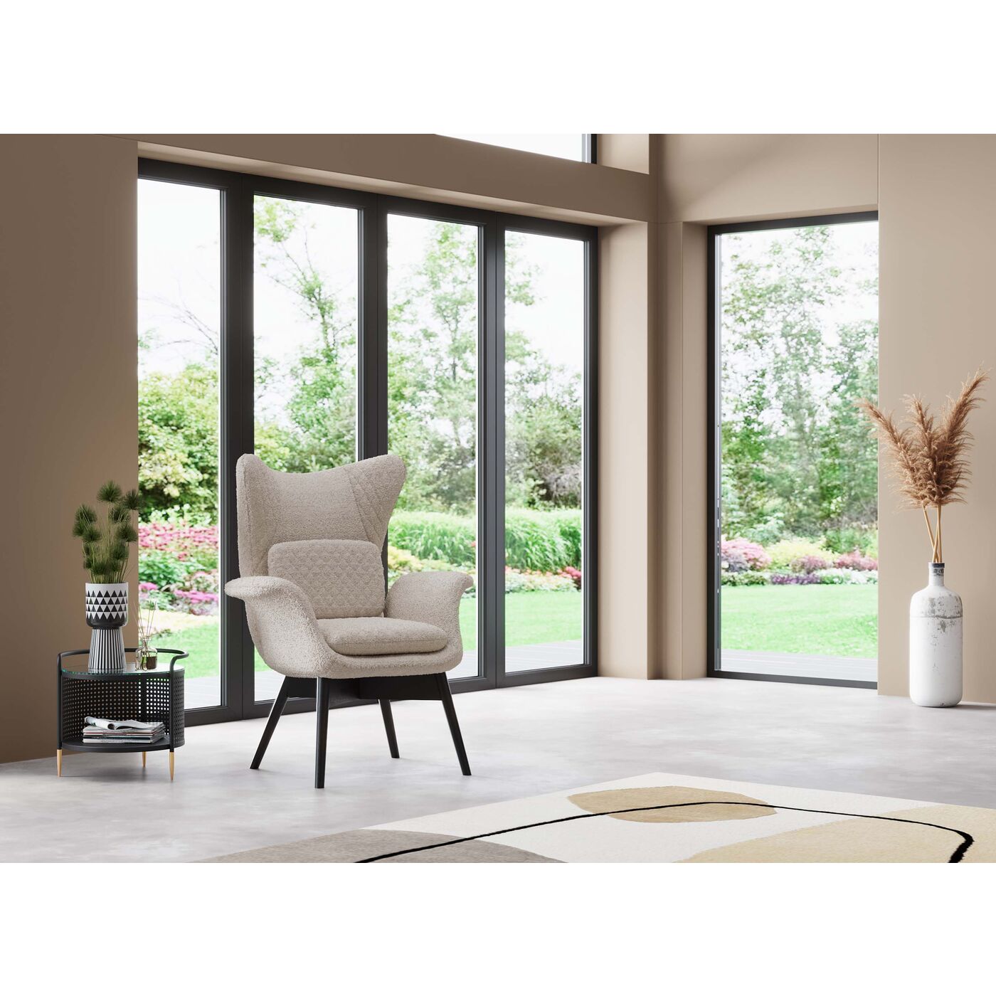 Material: Frame: Beech Medium density fibreboard (MDF) Natural/untreated, Steel natural, Cover: 95 % Polyester, 5 % Polyacrylic, Legs: Beech Solid wood Lacquered, 120 kg Max. load-carrying capacity, Knocked-down, 45 cm Seat height, 80000 Martindale, 25 kg/m³ Foam, Maintenance and Cleaning: Art. No. 25002 Furniture Cleaner