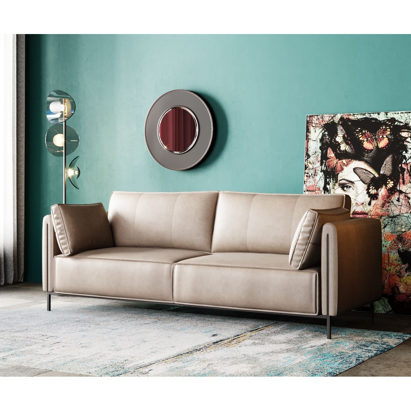 Material: Frame construction: Eucalyptus Solid wood Natural/untreated, Upholstery: 35 kg/m³ Upholstery foam Polyester, Cover: Cowhide Covered leather, Foot/Base: Steel powder-coated, Upholstery: elastic belt suspension, Spring core, 110 kg Max. load-carrying capacity per seat unit, 46 cm Seat height, Partly dismantled