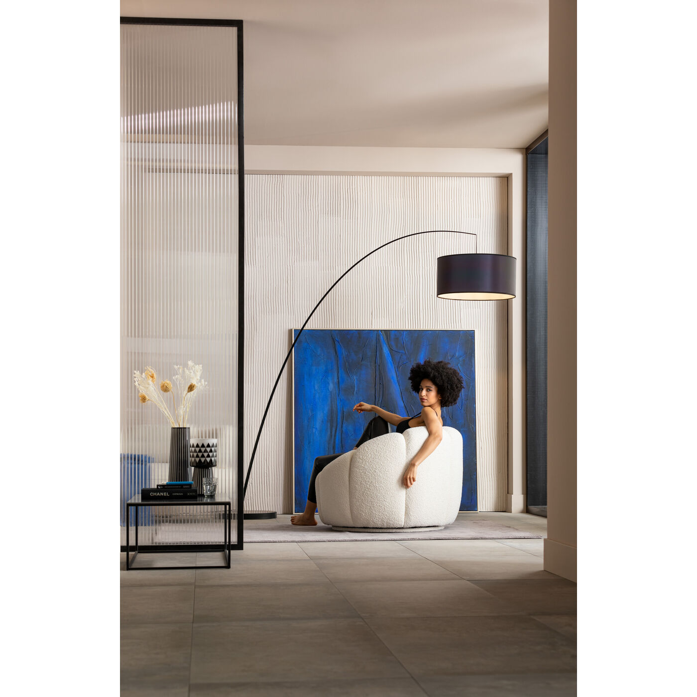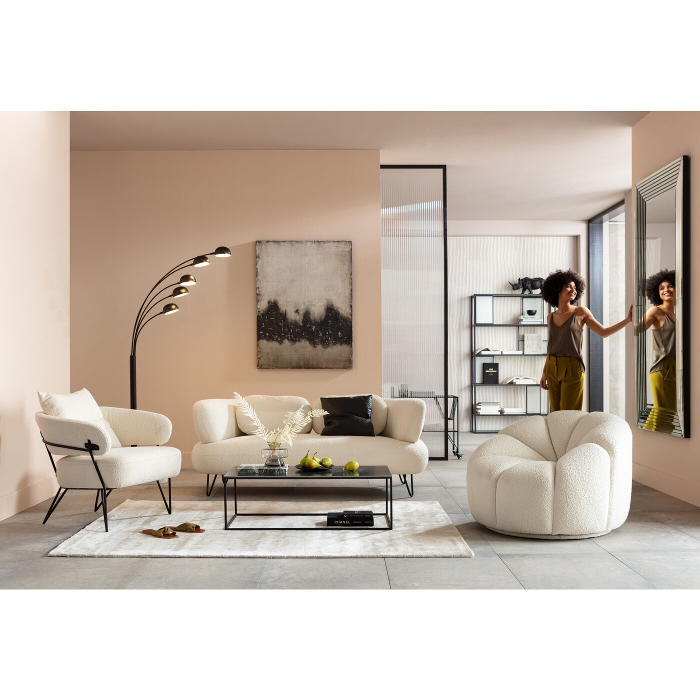 Round and round - this is how this cosy white armchair brings harmony to any room. In addition to the living area, it also feels at home in the bedroom, where its organic shape creates positive vibes. The pleasantly soft upholstery fabric in bouclé style is a real statement. A genuine on-trend piece! With its small loops and knots it displays a lively surface structure and elevates the look like the famous designer jackets made of the same fabric. The seat height of 42 cm, foam padding and quilting promise comfortable seating pleasure.